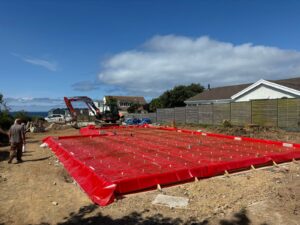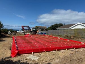 The Property utilizes a ‘reverse living’ approach, with a large lounge overlooking the Seven Bay. The finished home will be a four double bedrooms, four bathroom, reverse living property. The main entrance to the property is next to the large double garage, which also allows direct access to the main house and benefits from a utility room and shower room, idea to clean & store those sand filled wet suit’s, after a long day on the beach.