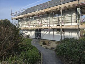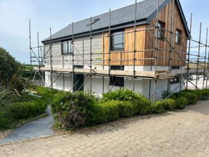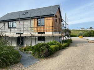 Cedar cladding installed and three coats applied. looks fantastic. Stone cladding and Millboard decking our next priorities.